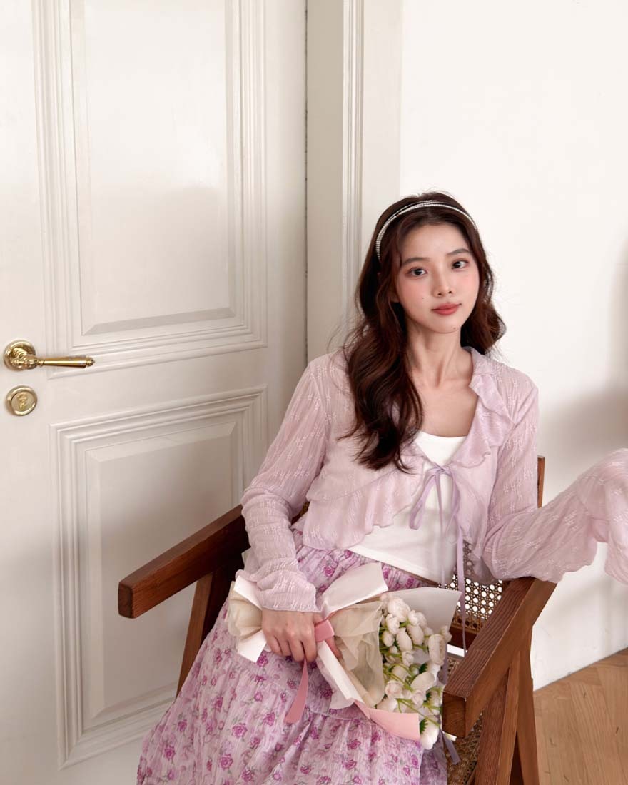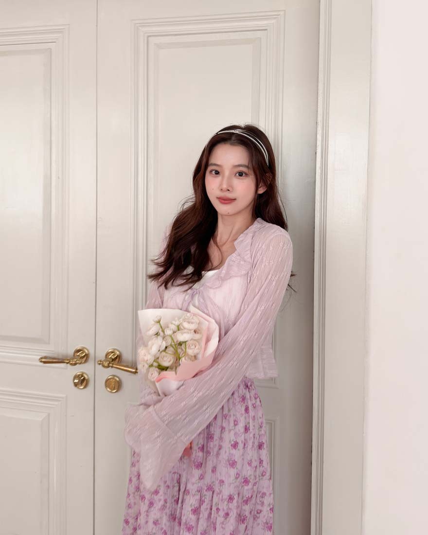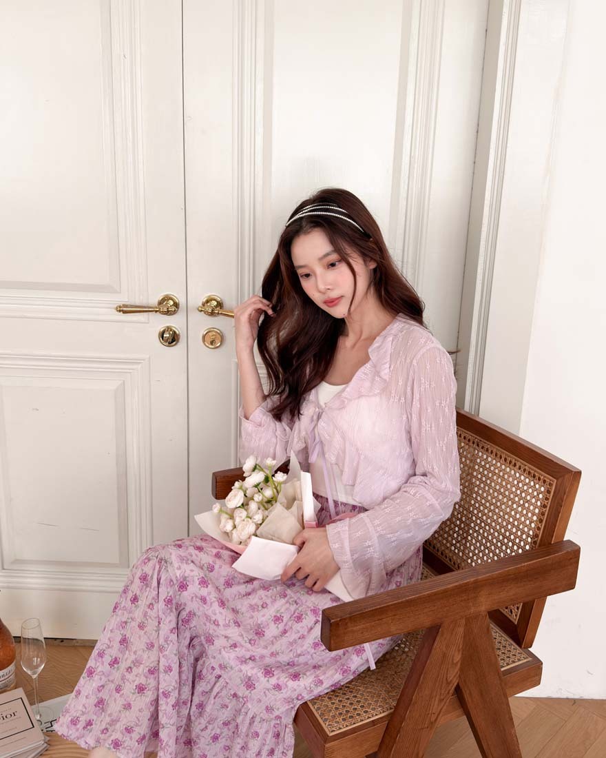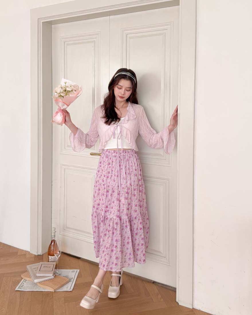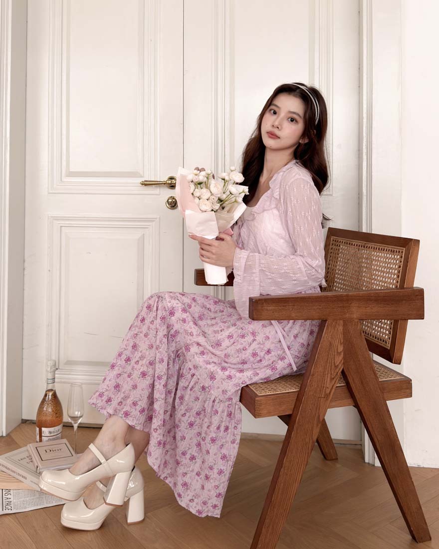 LINA LINA悸動花意滿版花卉鬆緊蛋糕長裙-甜粉紫