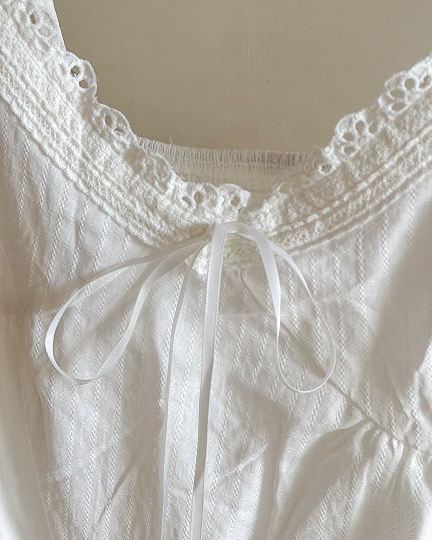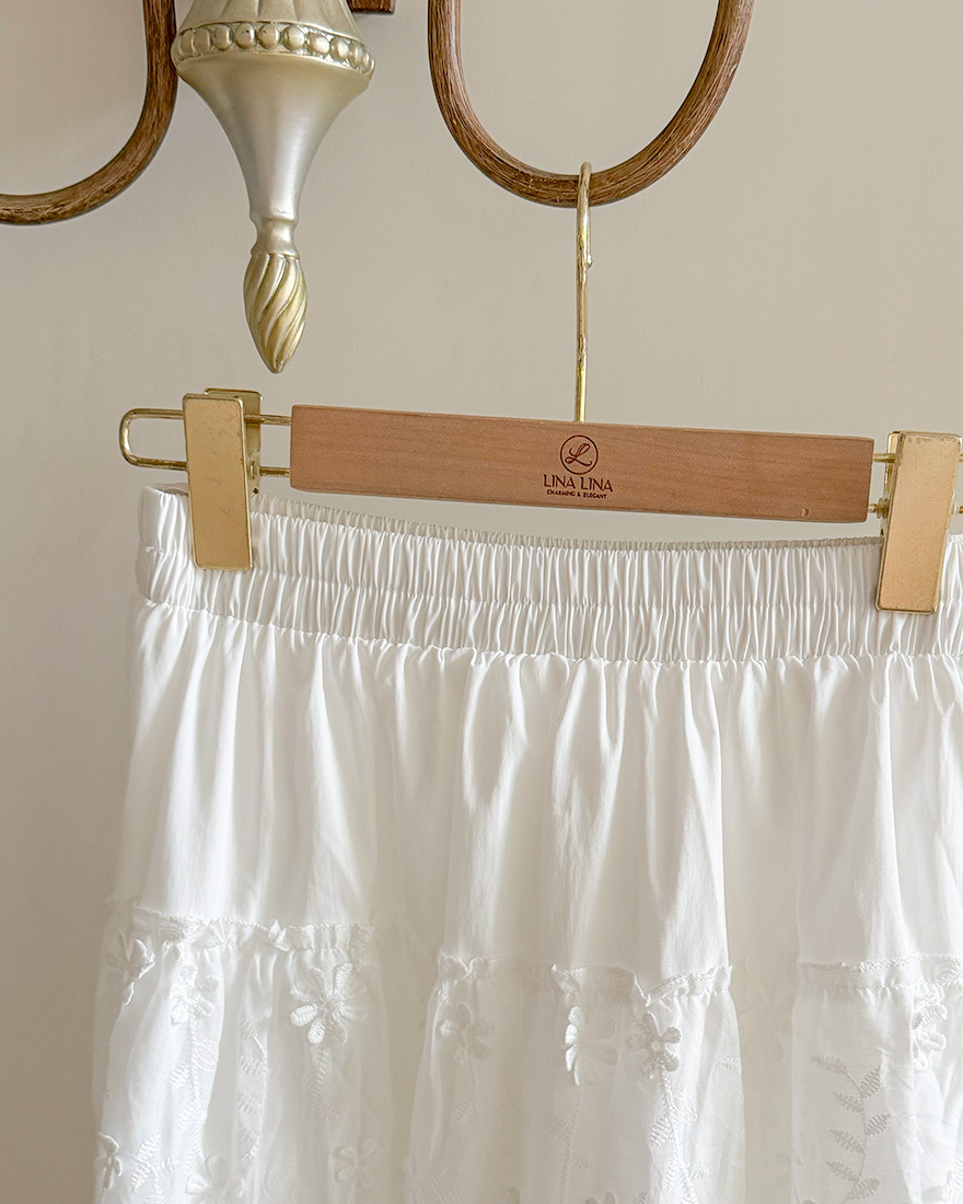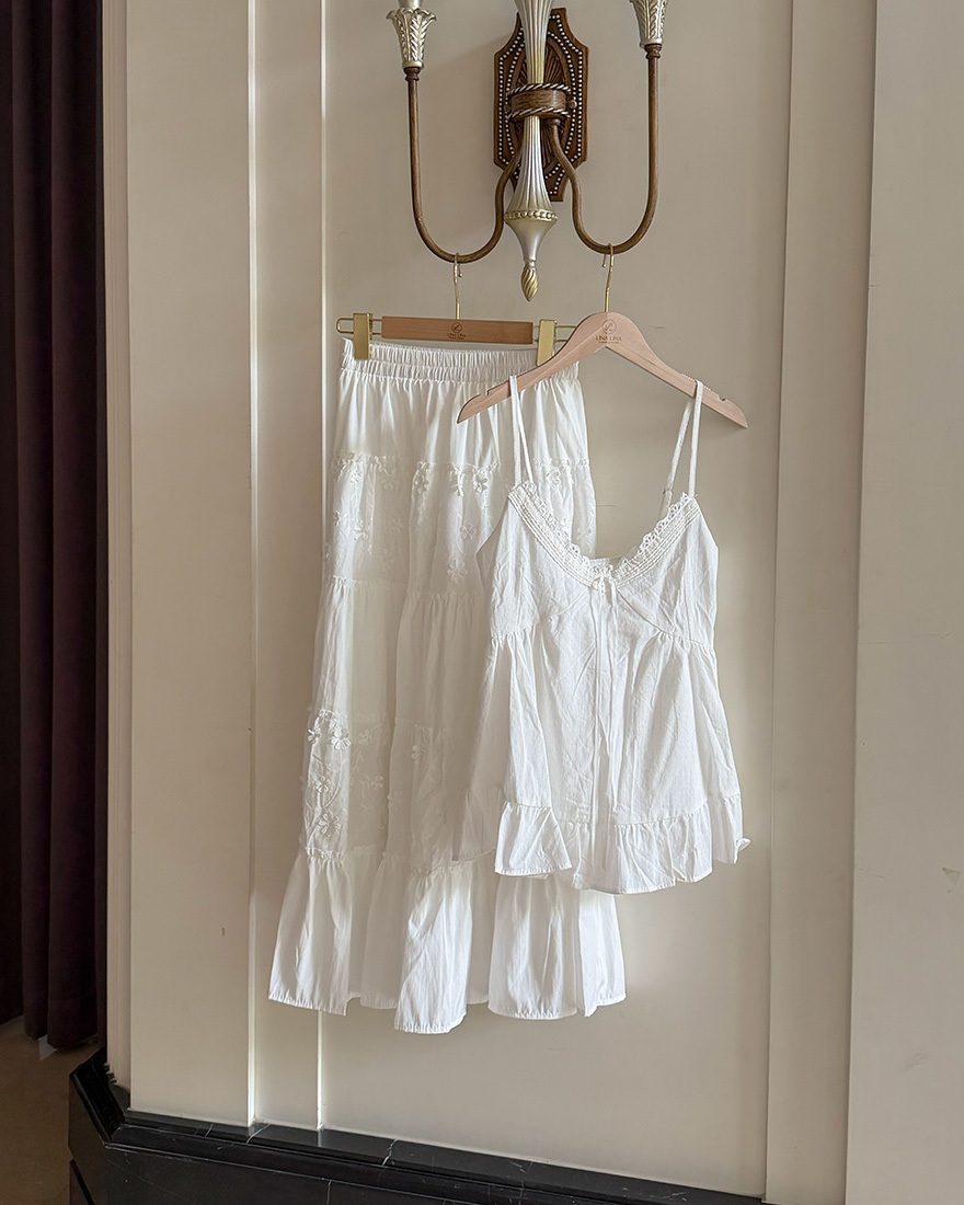 LINA LINA浪漫白月光蕾絲上衣緹花長裙兩件組-純潔白