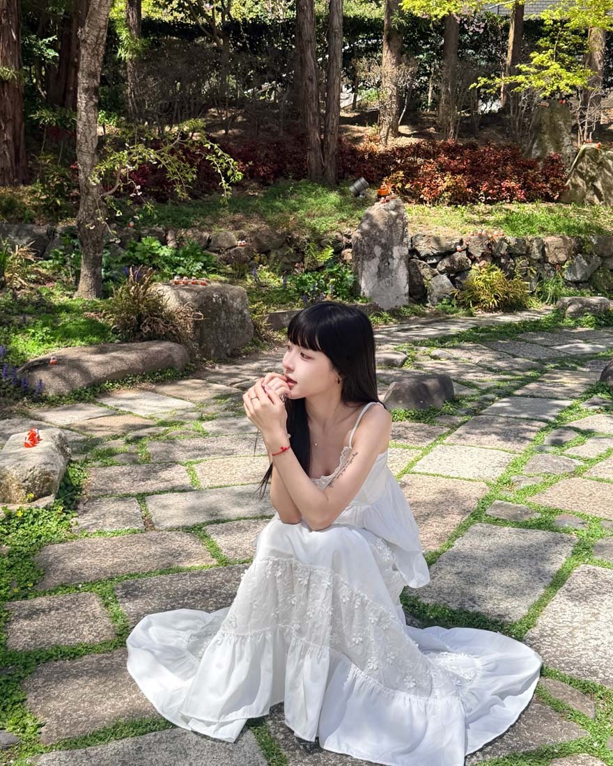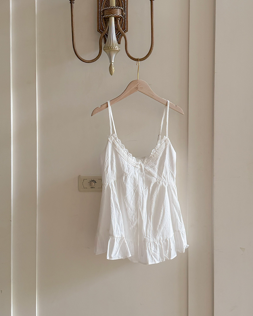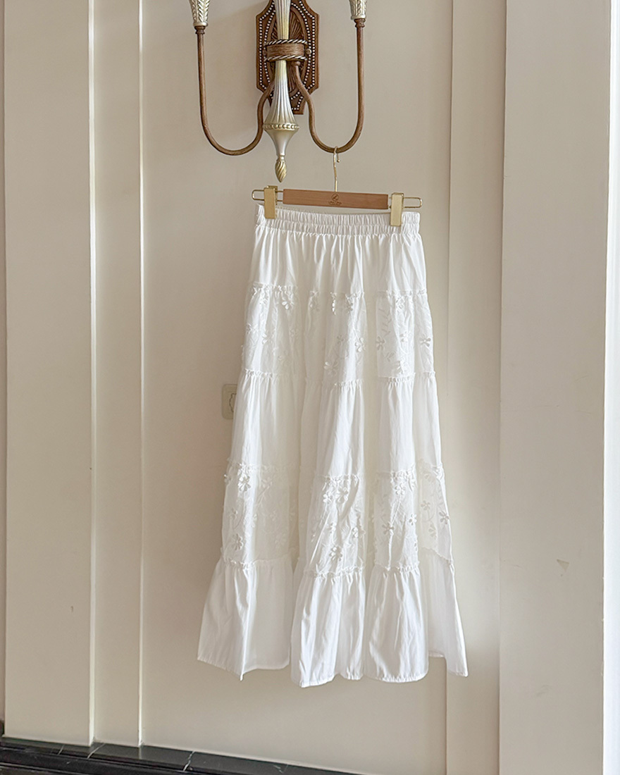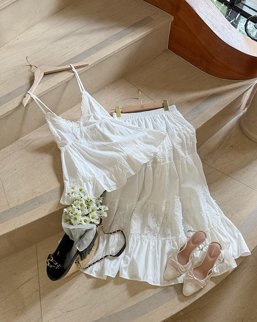 LINA LINA浪漫白月光蕾絲上衣緹花長裙兩件組-純潔白