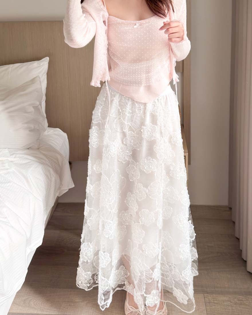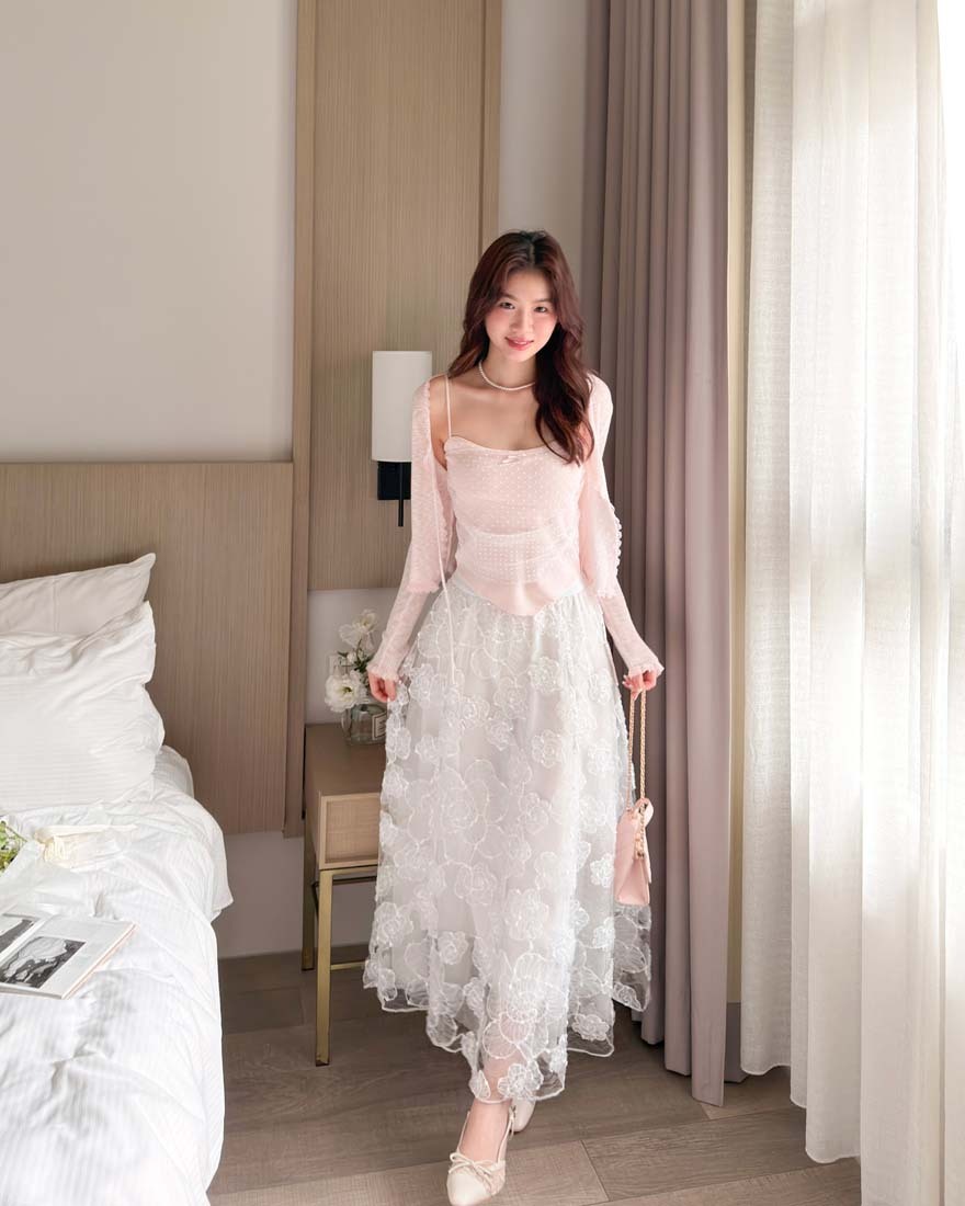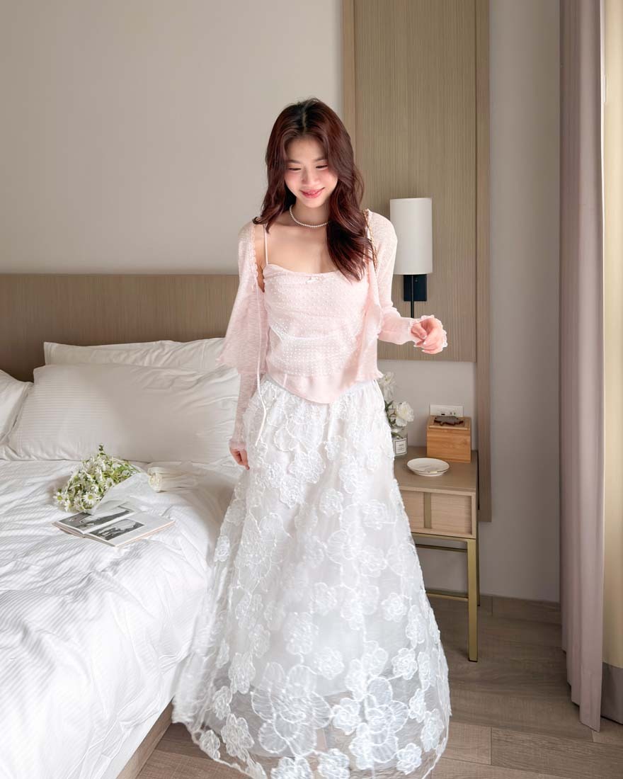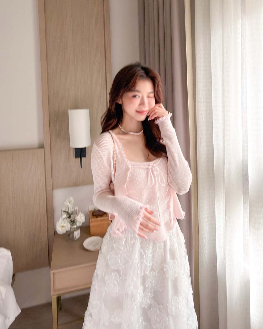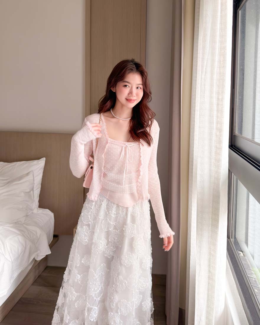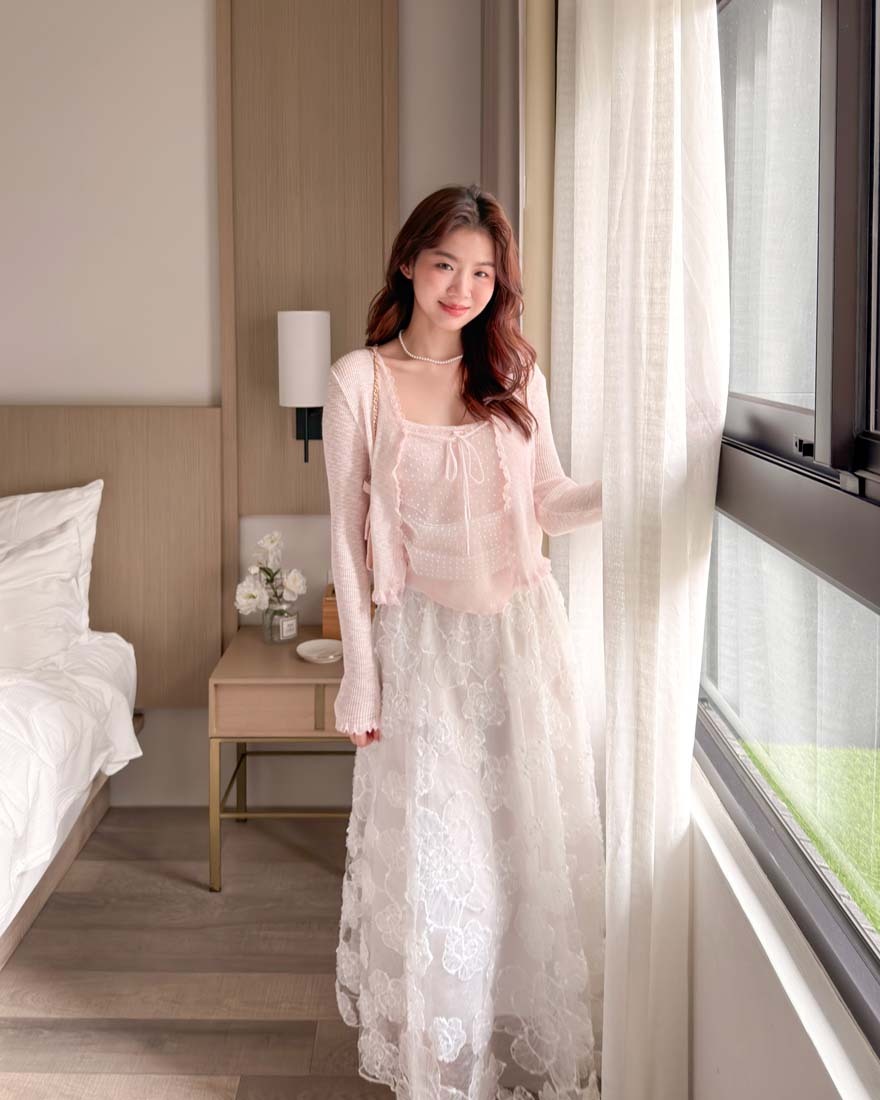 LINA LINA漂亮法則波點上衣蕾絲外套兩件組-櫻花粉