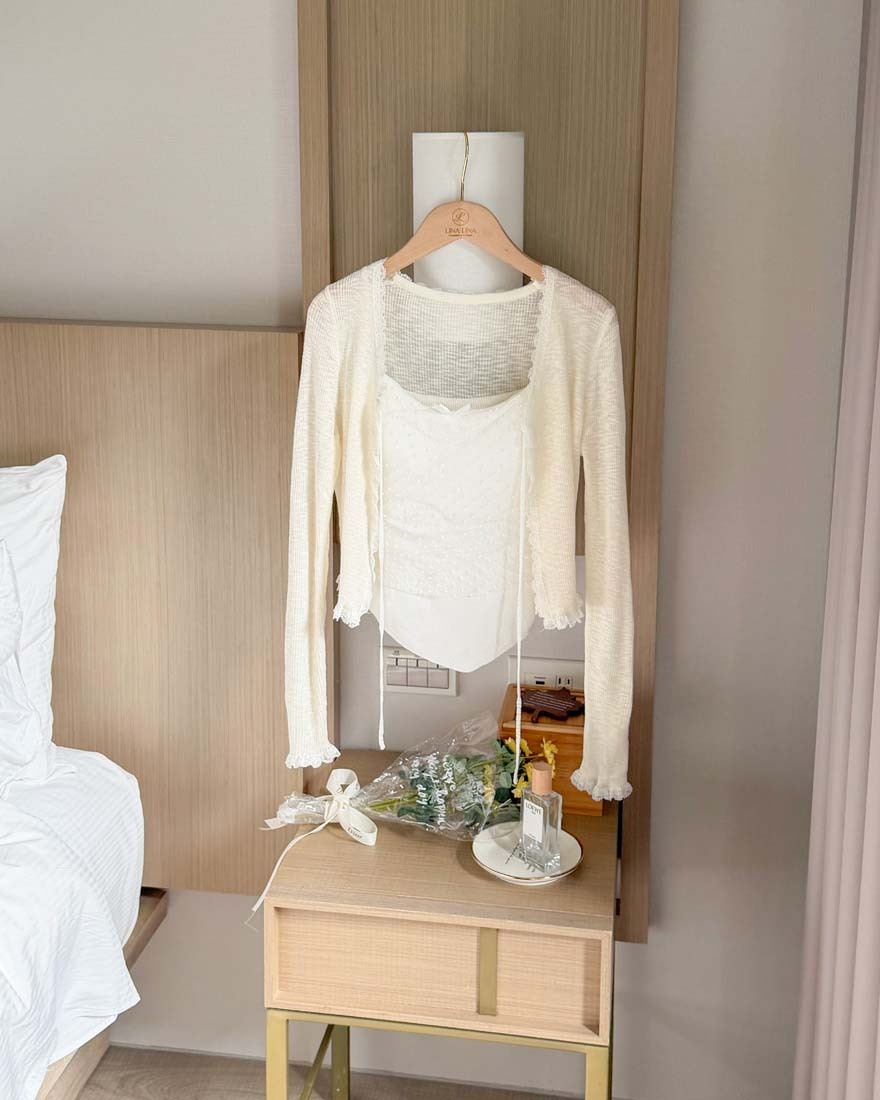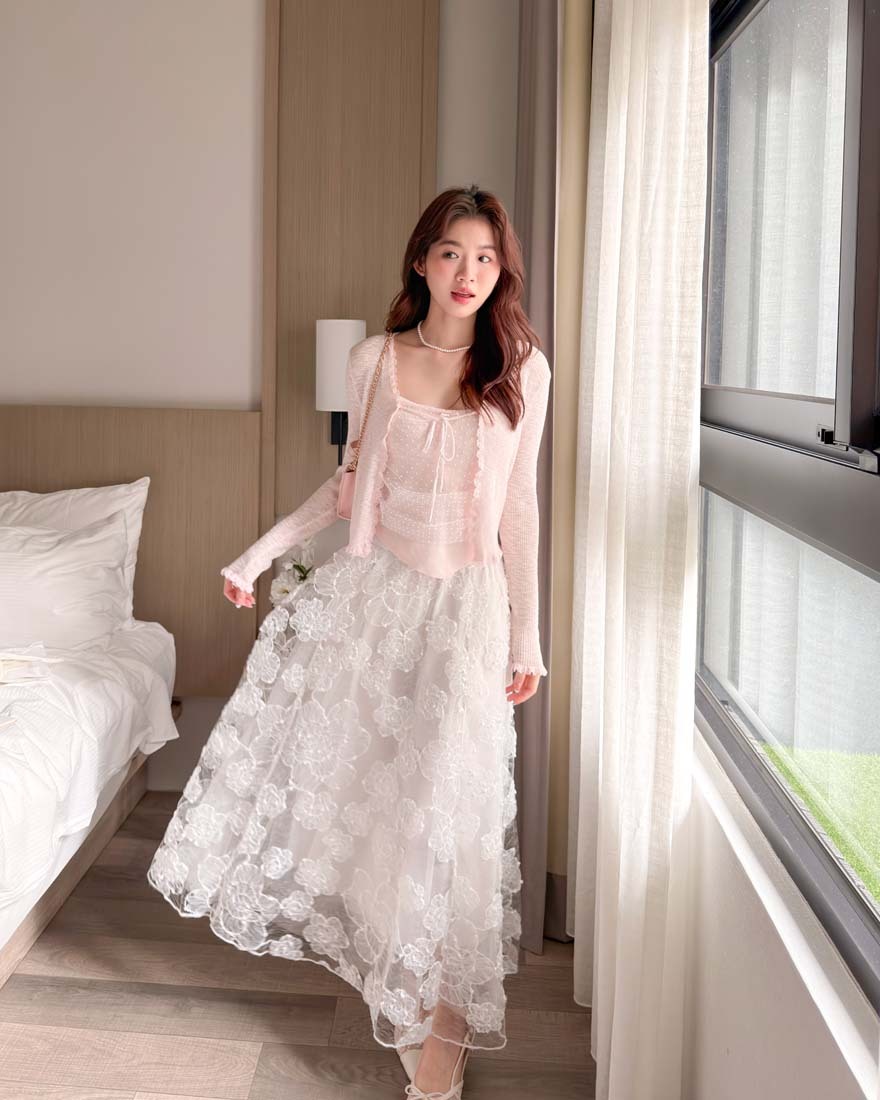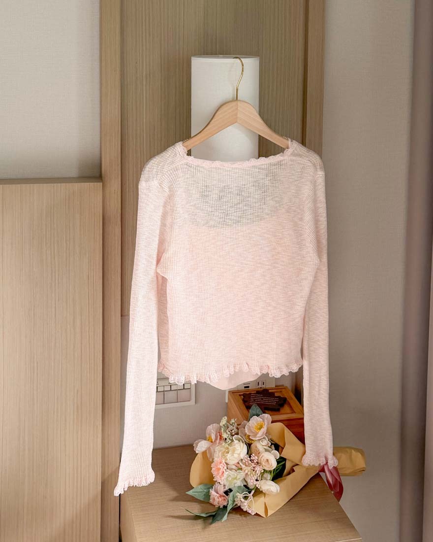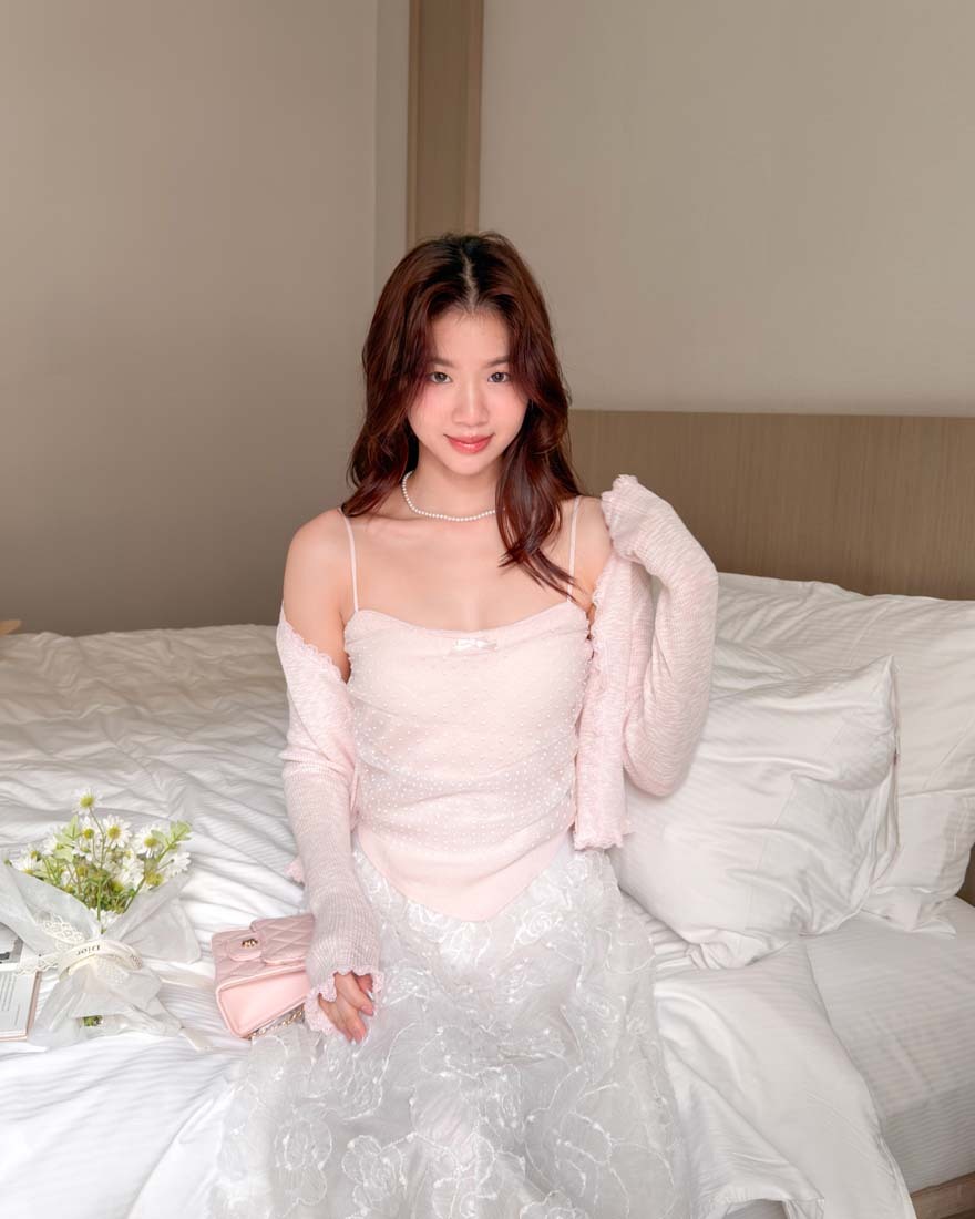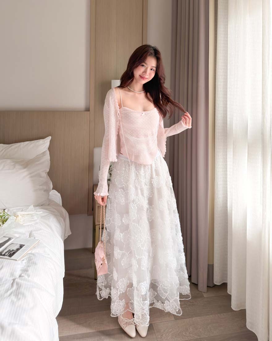 LINA LINA漂亮法則波點上衣蕾絲外套兩件組-櫻花粉