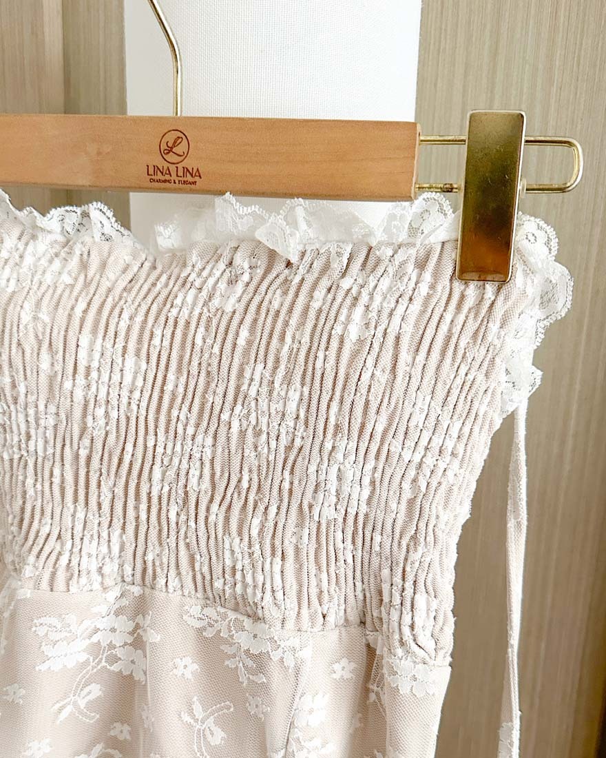 拼接花朵網紗+類馬甲的車線設計