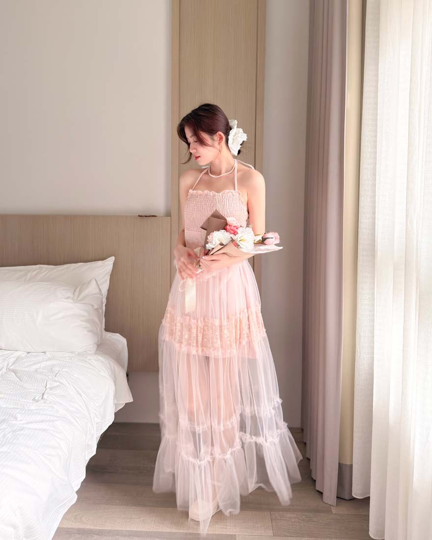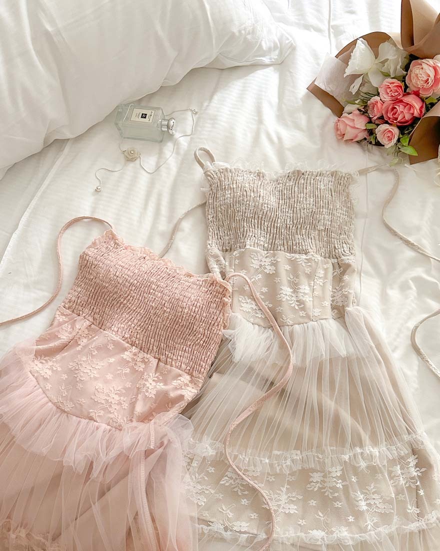 拼接花朵網紗+類馬甲的車線設計